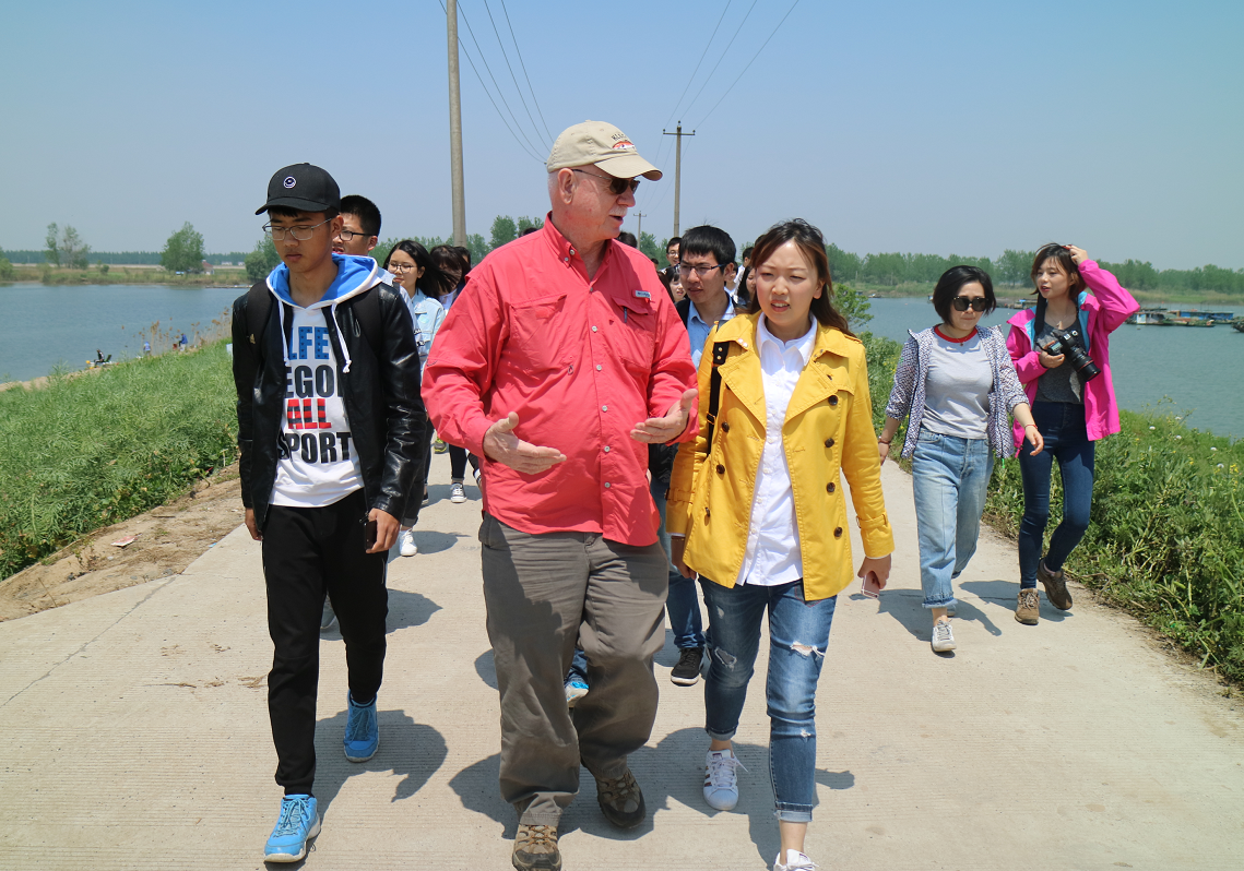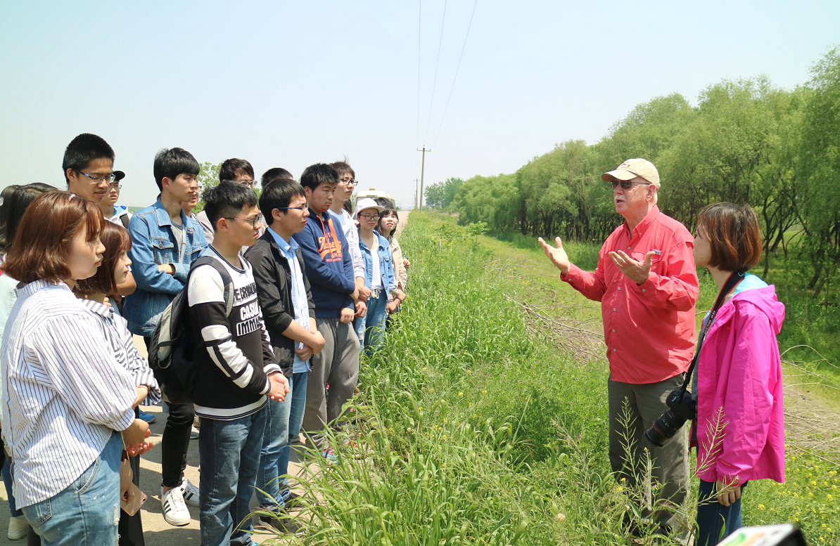 美国湿地专家Kevin L. Erwin(中文名:李若云)在现场向大学生们介绍湿地知识