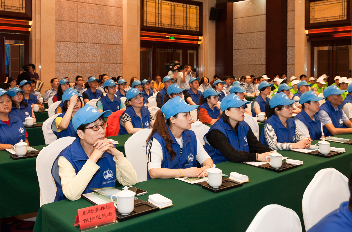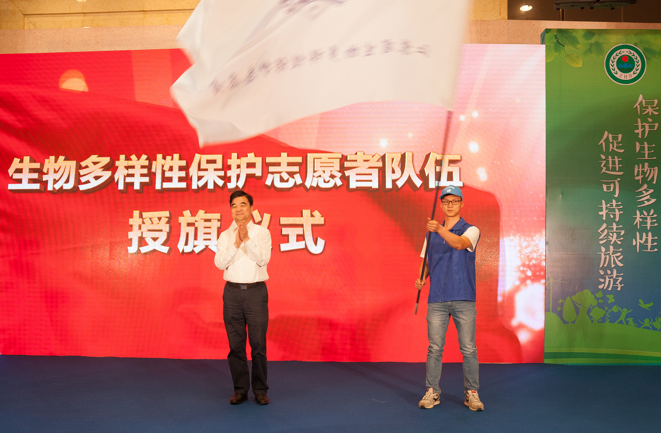 江苏省环保厅厅长陈蒙蒙为生物多样性保护志愿者队伍授旗