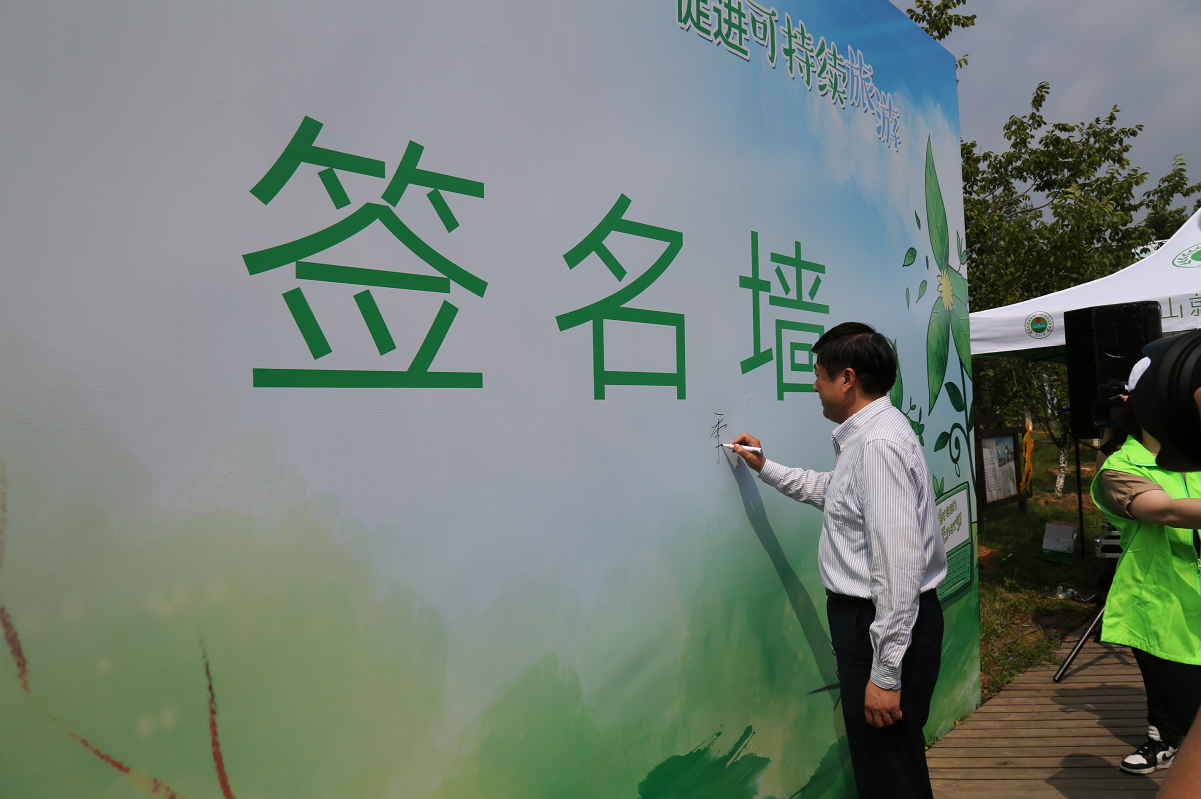 省环保厅副巡视员季丙贤率先在保护生物多样性签名墙上签名