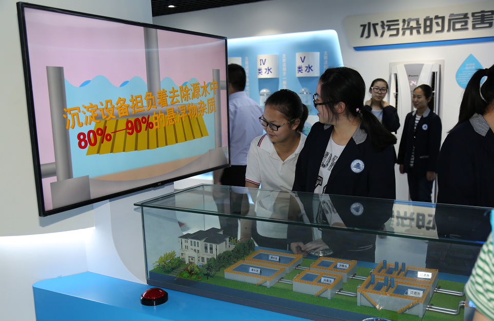 自来水不自来展区,是在传统沙盘模型的基础上加入互动操作,参观者通过转盘或按键为水处理的各个环节提供动力,使展项从观看类展项升级成互动类展项,从而引发参观者自发了解展示内容的兴趣。