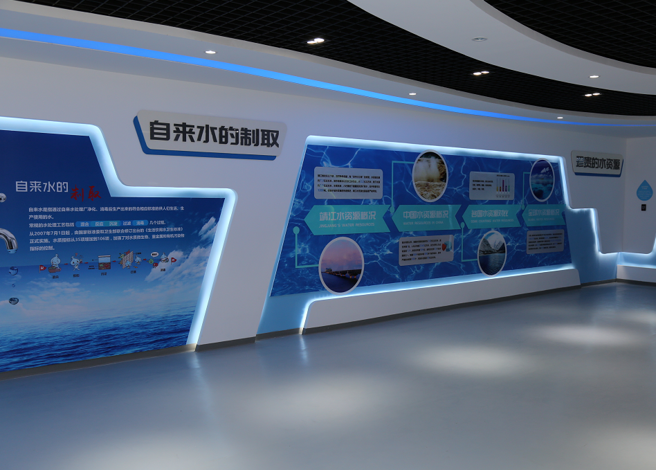水污染的危害展区,则运用了传统展示形式与高技术展品的组合展示,一方面通过生动趣味的漫画展示不同水质样本对鱼类生活的影响;另一方面通过展台的触控按键,观看造成水体污染危害的污染源,实现静态陈列与互动科技的立体演示,展示内容更为丰满,体验形式更具交互性。