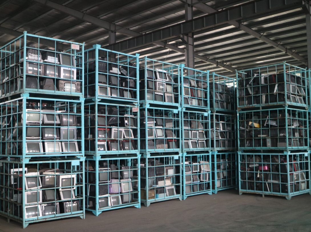 戴上安全帽和口罩,确认未携带易燃易爆物品后,大家走进拆解工厂。樊飞介绍,废旧家电进入车间后,首先要进行分拣,如电视和电脑按照相同屏幕尺寸归到一起,冰箱和洗衣机则按容量、空调按匹数来进行归类。工厂拆解最多是电视机,其次是电脑、冰箱、洗衣机和空调。