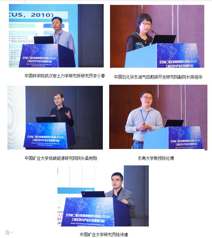 会议邀请中国科学院武汉岩土力学研究所、中国矿业大学、中国石化华东油气田勘探开发研究院、东南大学的5位知名专家学者做了关于CCUS技术的专题报告,南京大学、中国煤炭地质总局、江苏省生产力促进中心、中石化华东油气分公司、华能江苏能源开发有限公司、国家能源集团江苏电力有限公司、中石化南京化学工业有限公司等20家单位代表开展交流研讨。